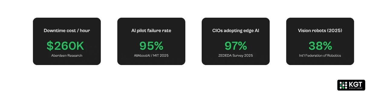 AllAboutAI analysis found that 95% of enterprise AI pilots fail to deliver measurable P&L impact. Most of those failures aren't algorithm problems. The model worked in the lab. It fell apart when the temperature spiked, the data feed stuttered, or someone bumped a camera out of alignment.
