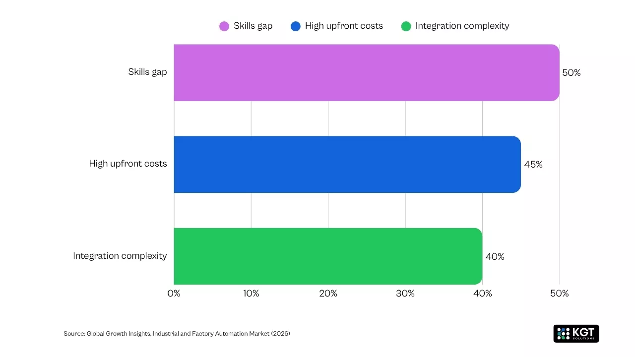 The barriers are people and process, not hardware. About 50% of organizations cite skills gaps as the primary obstacle. Another 45% point to upfront costs. Integration complexity affects 40% of deployments. A control room setup means nothing if the screens aren’t wired to the right systems.
