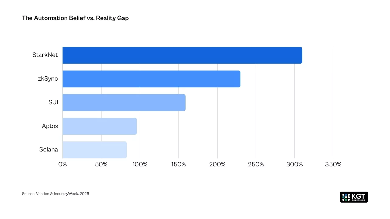 The developer ecosystem has shifted in ways that matter for hiring. Solana saw 83% year-over-year growth in new developers between 2023 and 2024. Aptos grew its developer base by 96%. Sui surged by 159%. Meanwhile, zkSync developer growth jumped 230% and StarkNet activity climbed 310% thanks to Cairo bootcamps (CoinLaw, 2026).