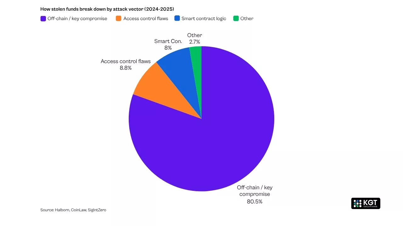 It means locking down your operational stack. Only 19% of hacked DeFi protocols in 2024 used multi-signature wallets, and just 2.4% employed cold storage, according to Halborn's Top 100 DeFi Hacks Report. Off-chain attacks accounted for 80.5% of stolen funds that year.
